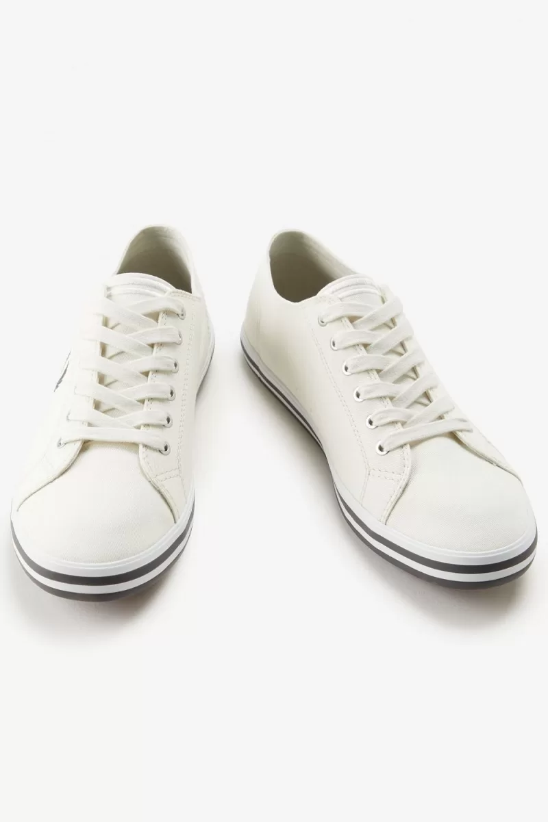 Mit unseren Füßen fest verwurzelt Im Tennis schlagen unsere Plimsolls eine Brücke zwischen dem Leben auf und neben dem Platz, entworfen mit entspanntem Freizeitstil und einer schlanken Sohle aus vulkanisiertem Gummi. Das Kingston basiert auf der DNA des Fred Perry Shirts und greift dessen wichtigste Designdetails auf, mit Doppelstreifen und Lorbeerkranz-Stickerei in bekannten Farben.