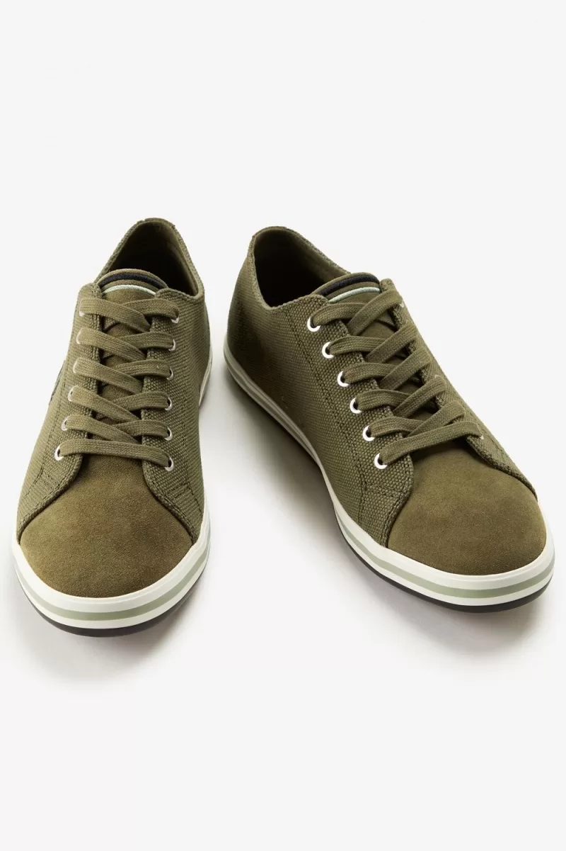 Obermaterial aus Twill-Stoff und Wildleder / Schlankes vulkanisiertes Gummi Sohle / Zunge und Außensohle mit zwei Spitzen / Einlegesohle aus recycelter Polyesterspitze und Canvas / Lorbeerkranz-Stickerei an der SeitenwandMit unseren Füßen fest verwurzelt Beim Tennis schlagen unsere Plimsolls eine Brücke zwischen dem Leben auf und neben dem Platz, entworfen mit entspanntem Freizeitstil und einer schlanken Sohle aus vulkanisiertem Gummi. Das Kingston basiert auf der DNA des Fred Perry Shirts und übernimmt dessen wichtigste Designdetails, mit Doppelstreifen und Lorbeerkranz-Stickerei in bekannten Farben.