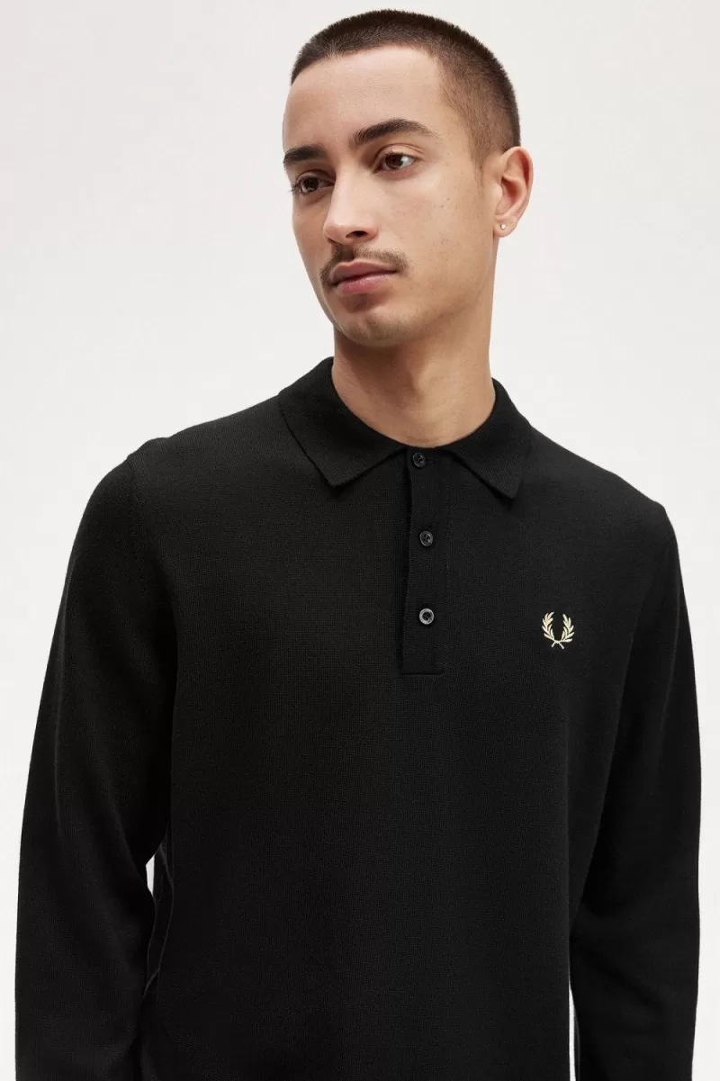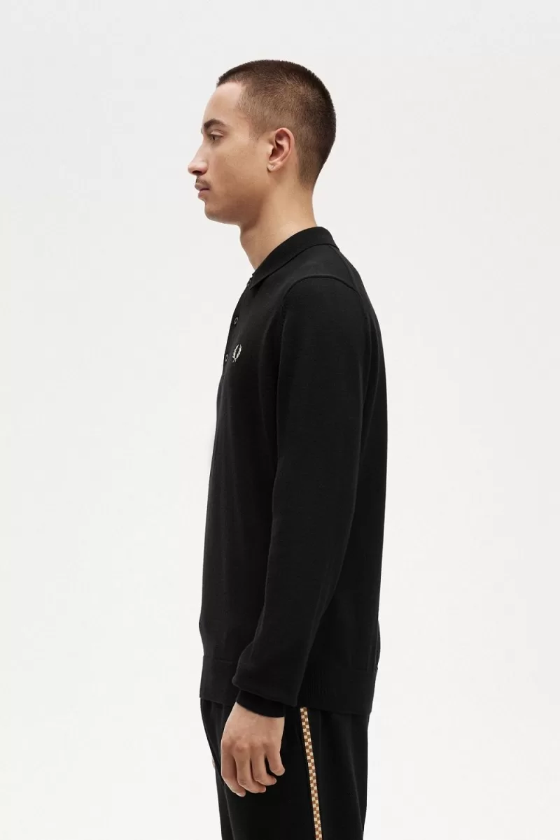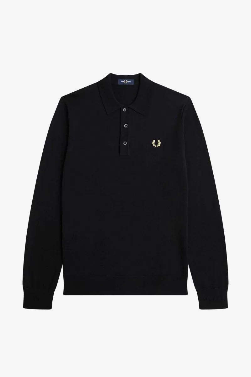 Feinstrick aus Merinowolle und Baumwolle / Klassische Passform /Gerippter Saum und Bündchen / Spitzkragen und Knopfleiste mit drei Knöpfen / Lorbeerkranz-Logo auf der linken Brust