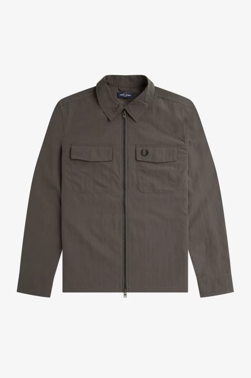 Ein Overshirt mit durchgehendem Reißverschluss und weichem Griff mit Knittereffekt.