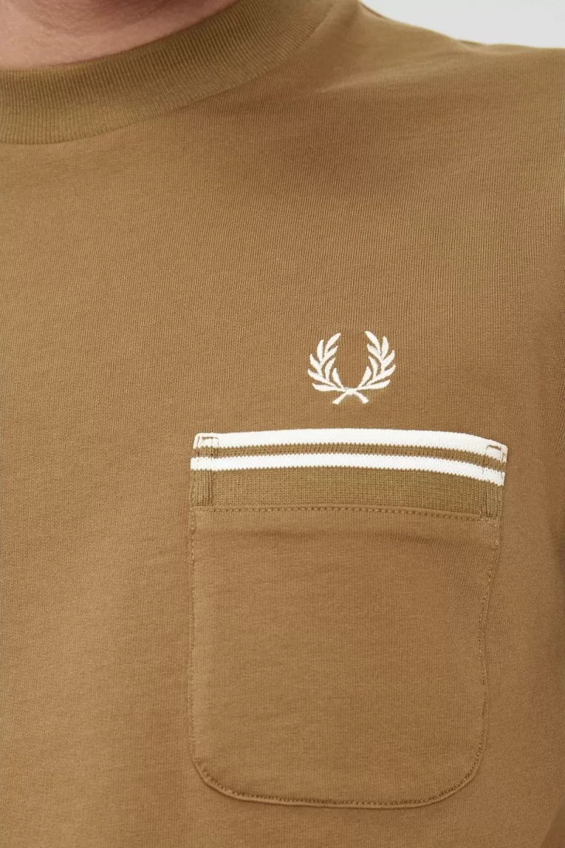 Wie ein T-Shirt, aber besser. Unser Loopback-Jersey-Taschen-T-Shirt besteht aus einem schweren French-Terry-Stoff, mit tieferen Besätzen am Rundhalsausschnitt und an den Manschetten sowie markentreuen Fred Perry-Details an der Brusttasche.