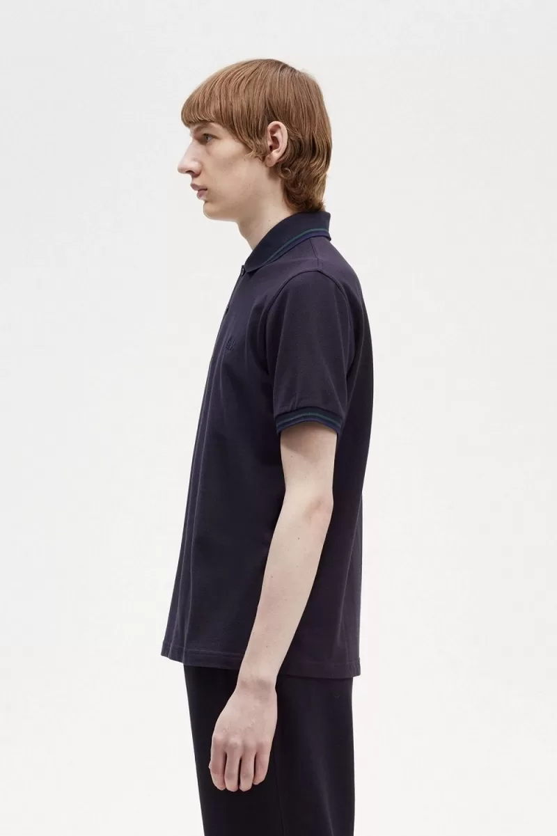 Das originale Fred Perry-Hemd mit zwei Streifen. Hergestellt von erfahrenen Händen in Leicester, England, mit Freds charakteristischer, stromlinienförmiger Passform. Seit 70 Jahren ein Stück britischer Subkultur-Uniform.