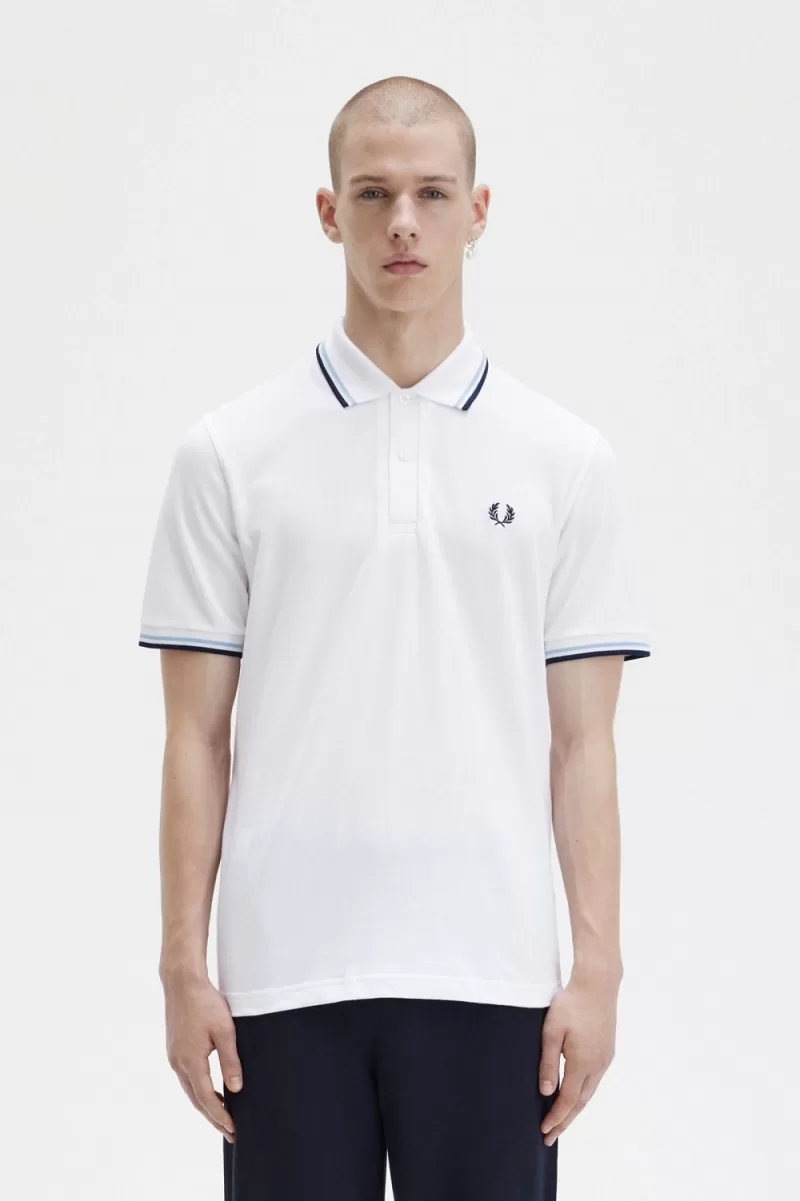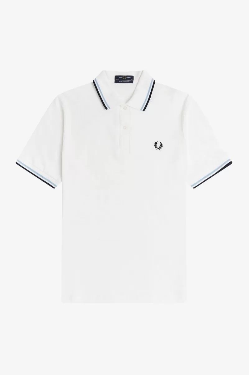 Das originale Fred Perry-Hemd mit zwei Streifen. Hergestellt von erfahrenen Händen in Leicester, England, mit Freds charakteristischer, stromlinienförmiger Passform. Seit 70 Jahren ein Stück britischer Subkultur-Uniform.