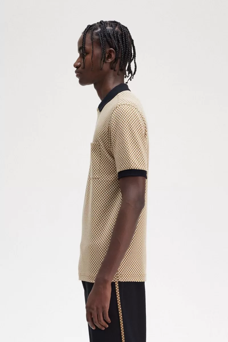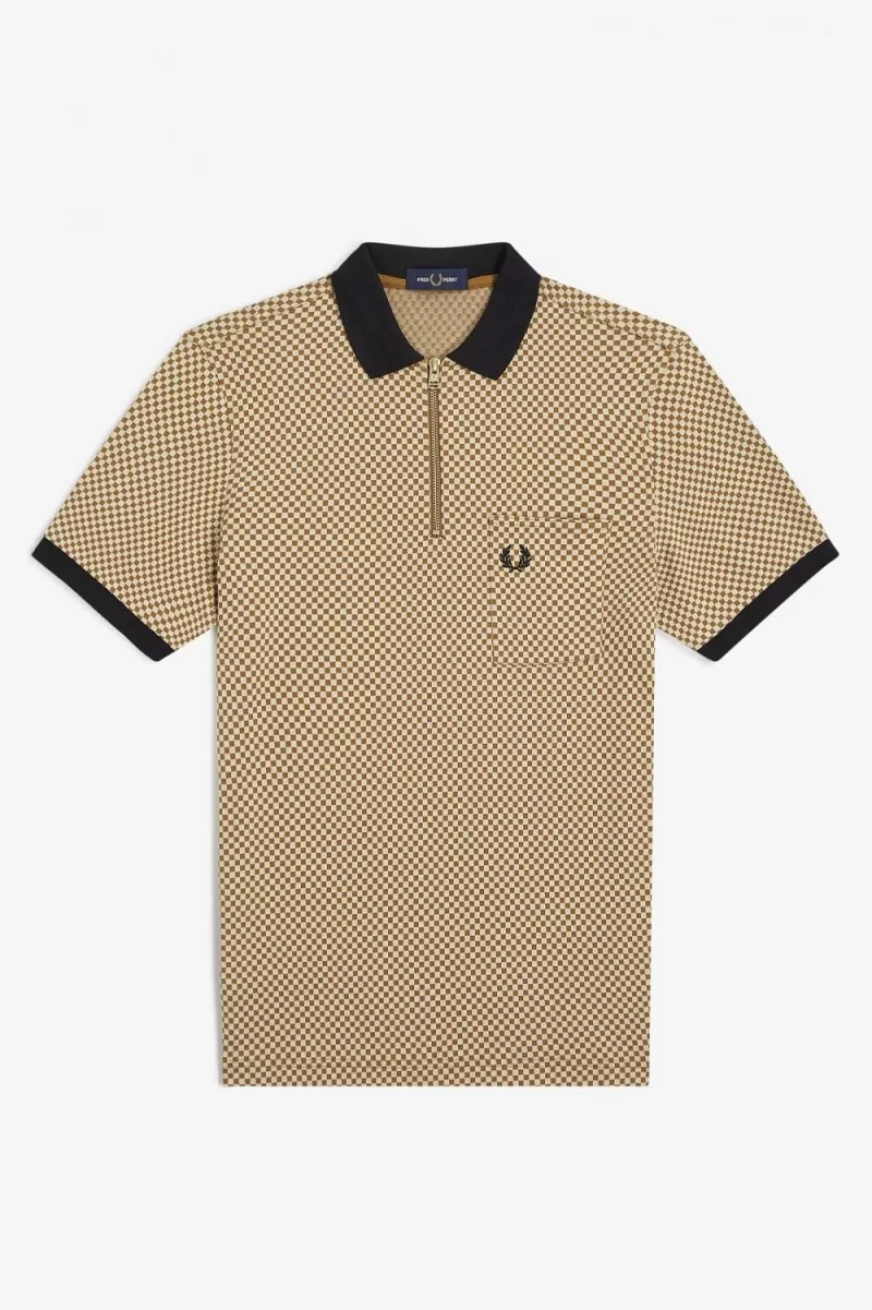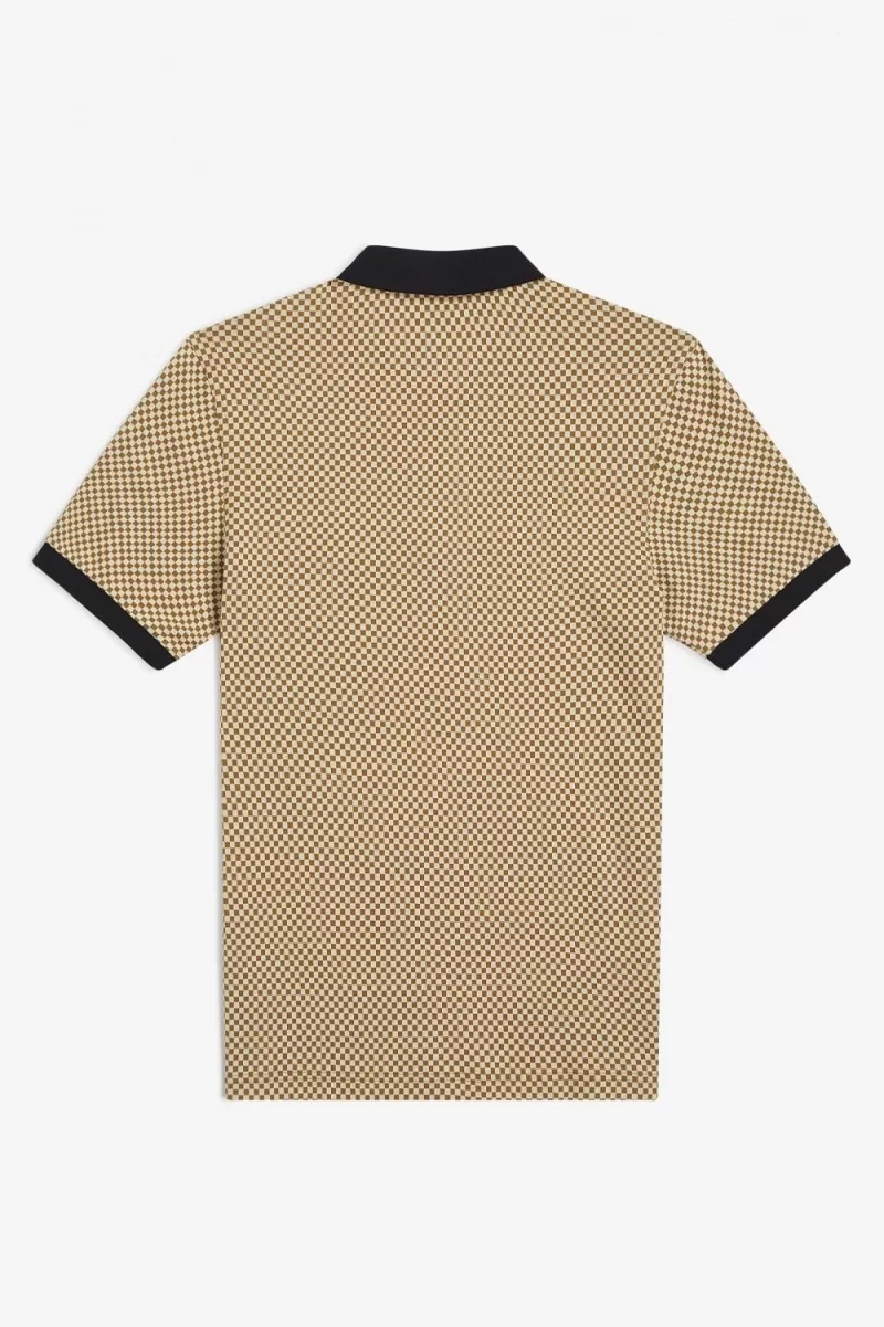 Micro Chequerboard Herren-Poloshirt Oatmeal Dark Coffee