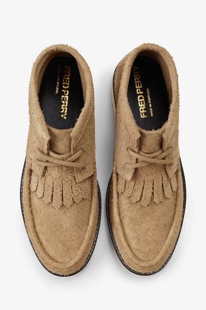 Wir stellen eine brandneue vor Im Schuhstil ist der Kenney Mid aus stark strukturiertem Premium-Wildleder gefertigt. Die robuste Commando-Gummisohle verfügt über einen Sturmrahmen und das traditionelle Quastendetail ist abnehmbar, um die Formalität je nach Outfit zu ändern. In Portugal gefertigt, mit Lederschnürung und Gimpenkragen, ist dies der etwas raffiniertere jüngere Bruder des Wüstenstiefels.
