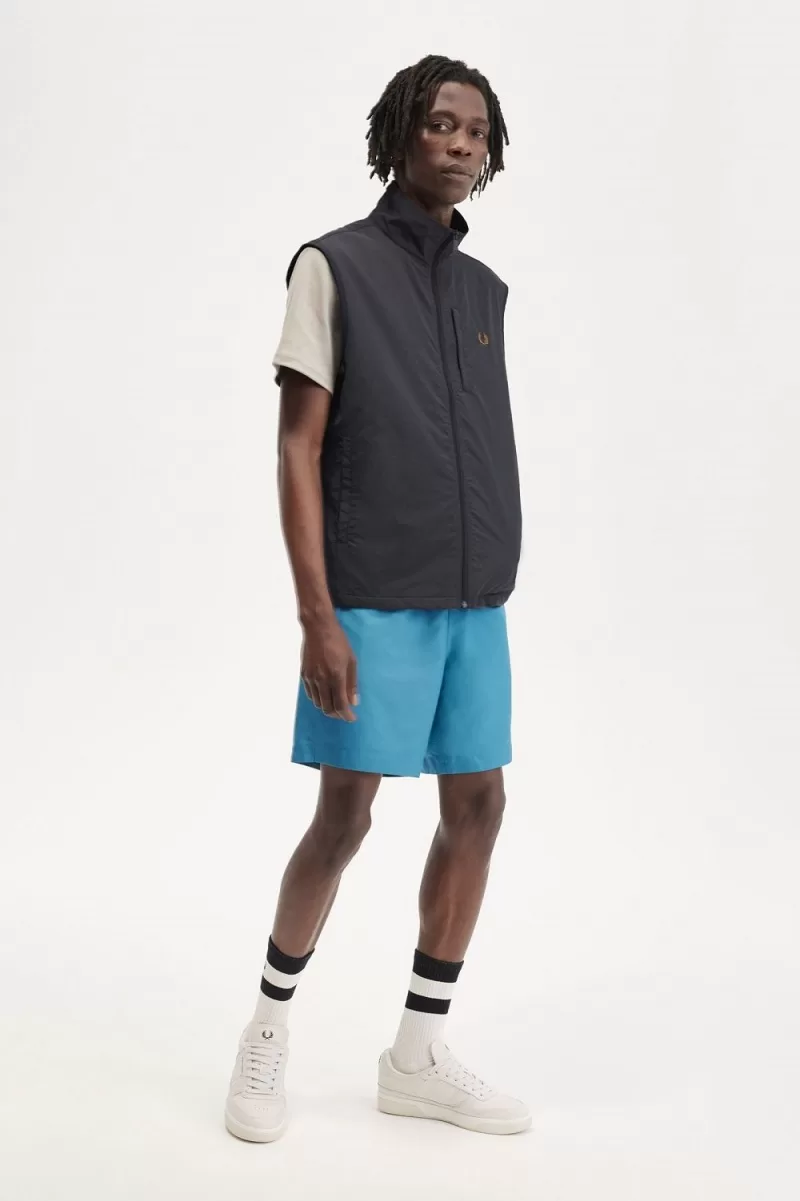 Kinder aus den 90ern werden dieses hier kennen ein Bodywarmer. Wie auch immer Sie es nennen, der ärmellose Overlayer hat seine Wurzeln in der Hip-Hop-Aktivkleidung der 90er-Jahre und passt gut zu Kampfhosen. Dieses Modell wird von allen, vom Sportler bis zum Skater, liebevoll angenommen und verfügt über einige Details für Erwachsene, darunter einen hohen Kragen, ein marineblaues Netzfutter und eine kontrastierende Einfassung am Armloch sowie eine Brusttasche mit Reißverschluss.
