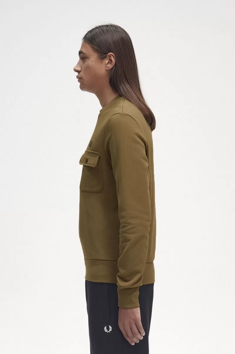 Unser Sweatshirt mit Rundhalsausschnitt, gefertigt aus Baumwoll-Loopback und mit einer geknöpften Brusttasche.
