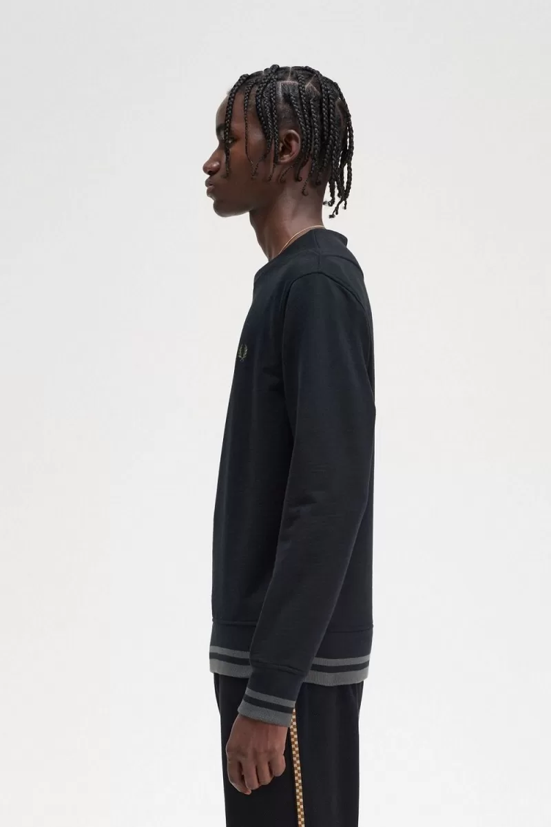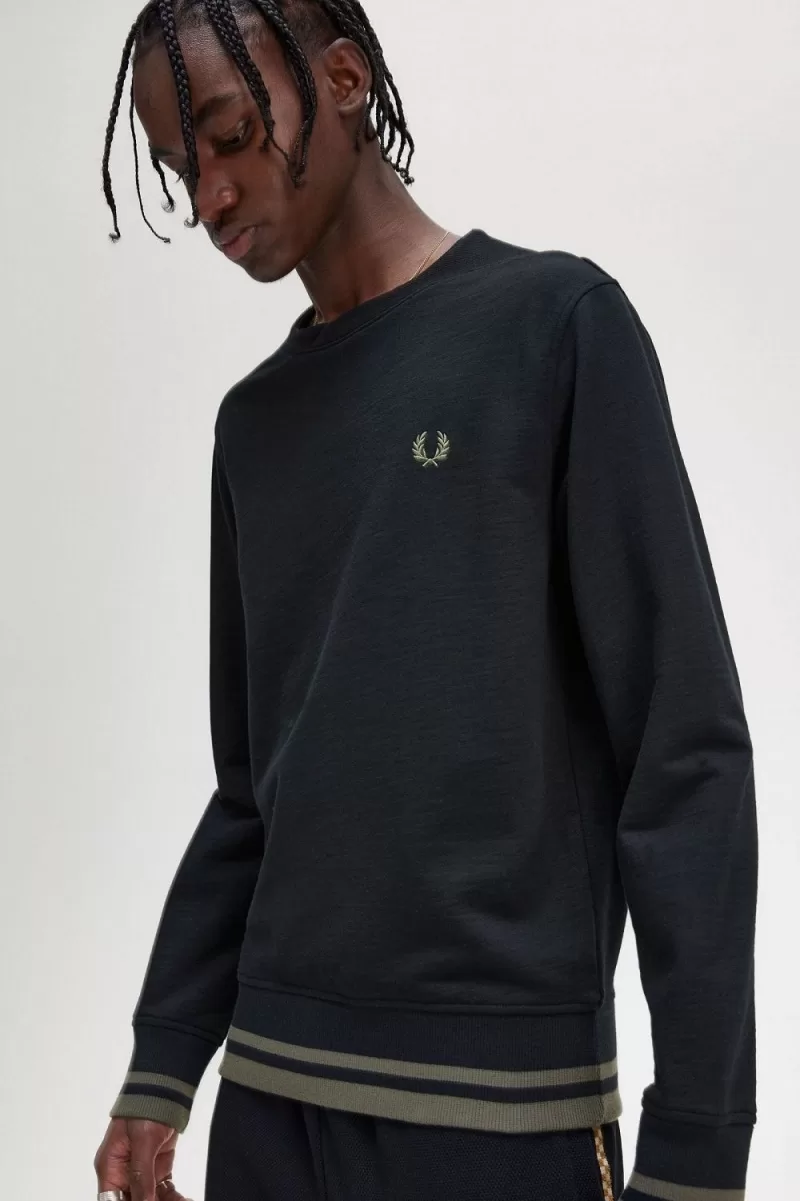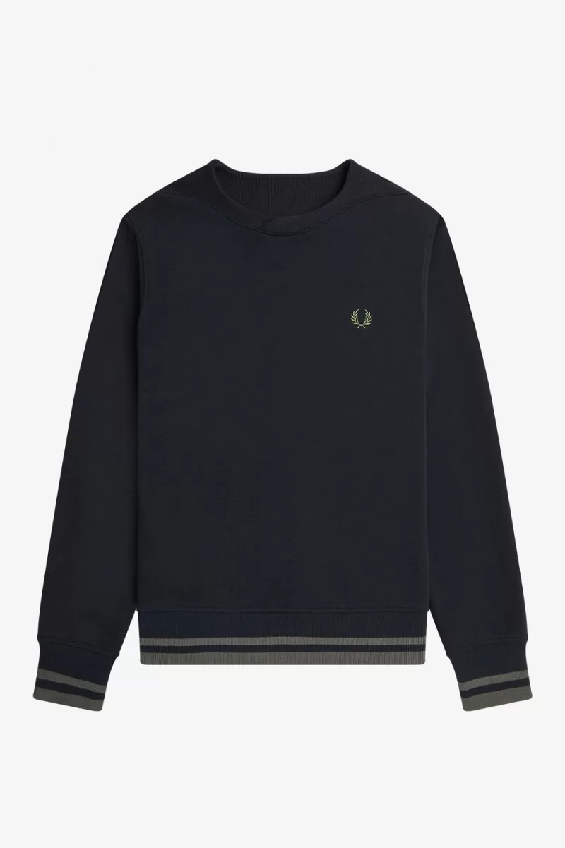 Eine zusätzliche Schicht für alle Jahreszeiten: Unser Sweatshirt mit Rippdetail wertet ein Kleidungsstück mit gerippten Einsätzen, Rundhalsausschnitt und dem charakteristischen Fred auf Perry Twin Tipping.