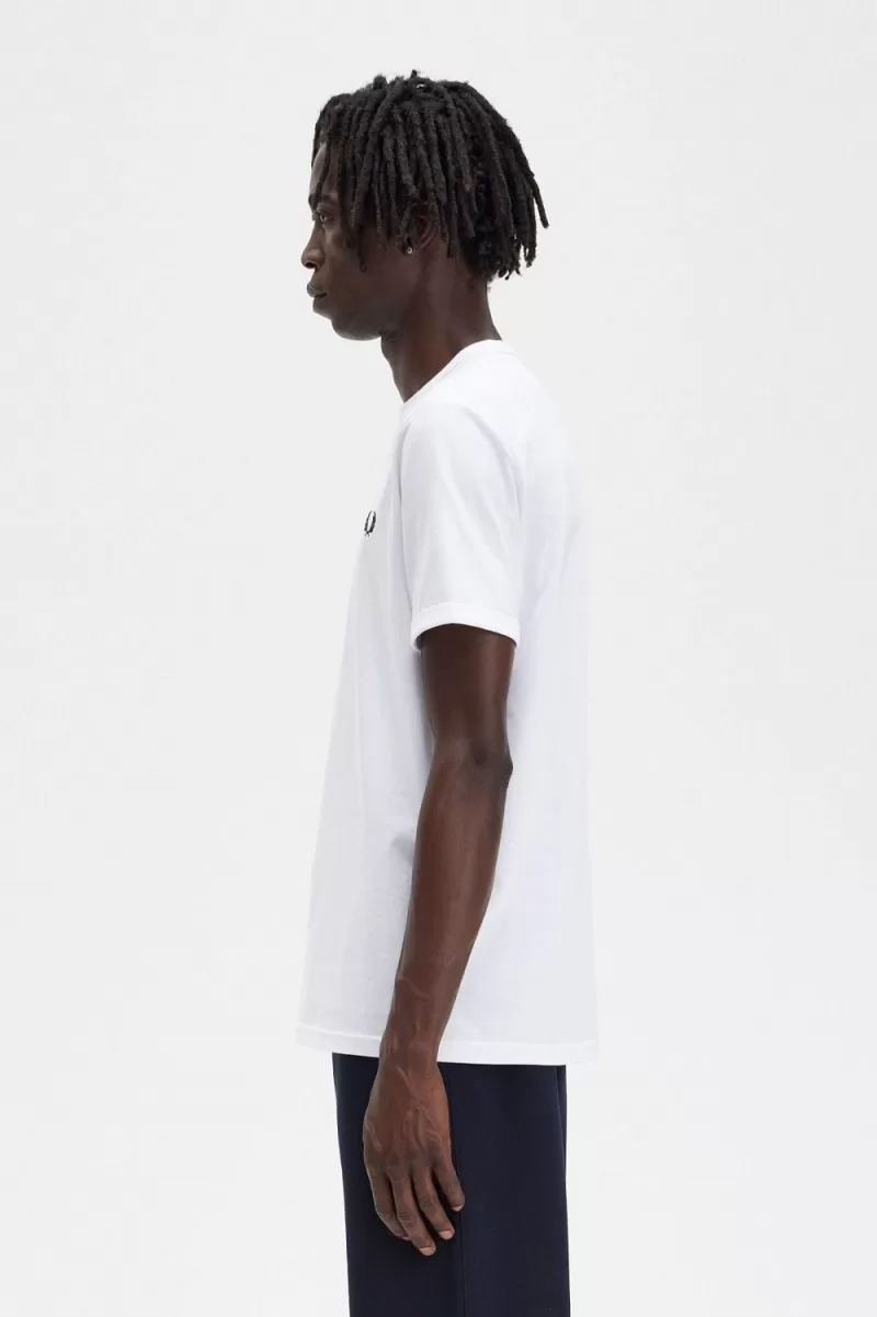 Ursprünglich als Sport-Trainingskleidung getragen, wurde das Ringer-T-Shirt später in die subkulturelle Uniform übernommen. Ab den 70er-Jahren und darüber hinaus wurde es mit kräftigen, kontrastierenden Farben und grafischen Drucken hergestellt. Unseres ist in den bekannten Tönen von Fred Perry gehalten.