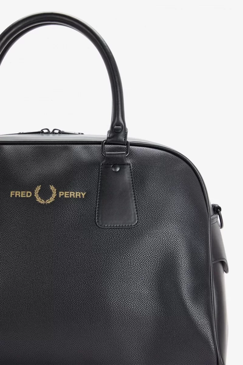 Eine Reisetasche mit strukturiertem Scotch-Grain-Finish und einem abnehmbaren Schultergurt aus Gurtband. Abgerundet mit dezentem Fred Perry- und Laurel Wreath-Branding.