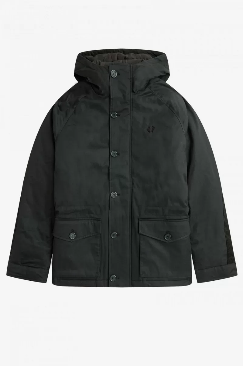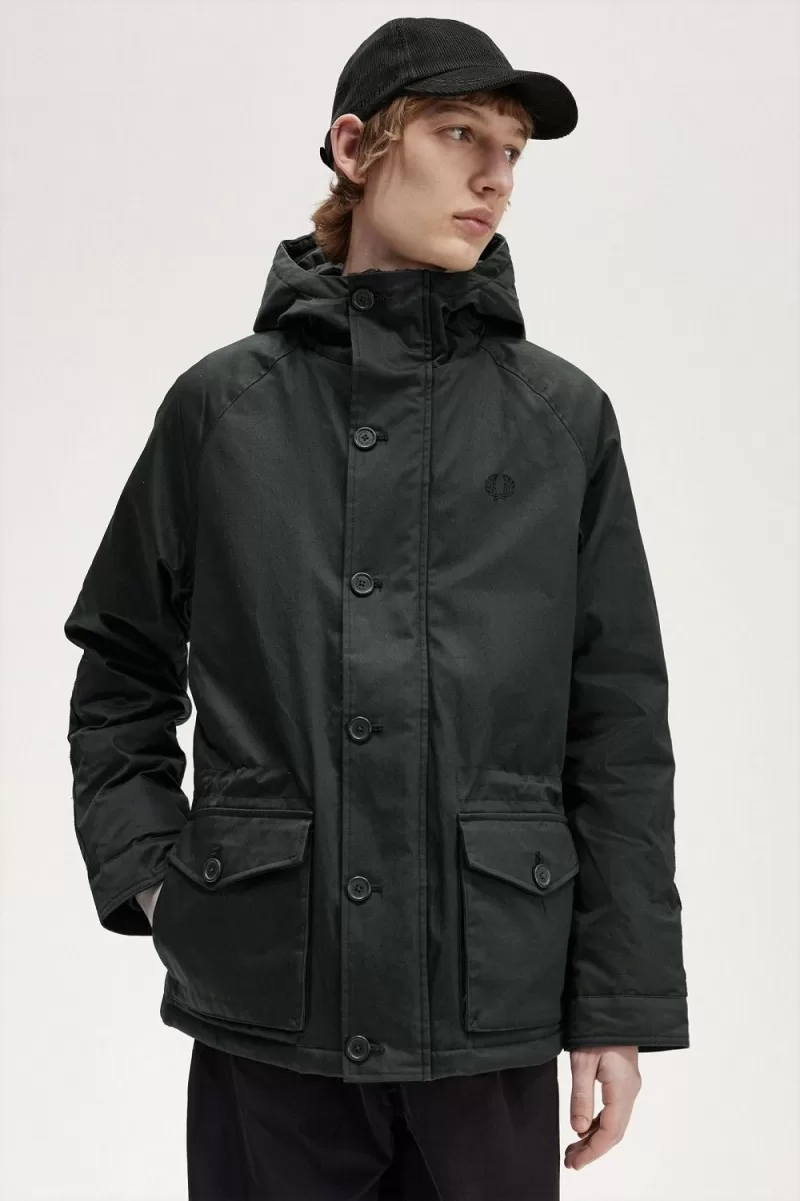 Unser Parka aus Wax-Baumwoll-Shell mit Waffelkordelbesatz an den Ellenbogen.