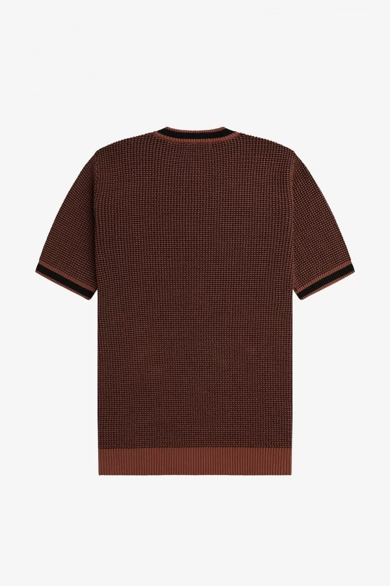 Hergestellt aus zweifarbigem, strukturiertem Strick Dies ist eine erhöhte Form des klassischen Rundhalsausschnitts. Mit dicken Rippstrickbündchen und den charakteristischen Fred Perry-Bündchen am Rundhalsausschnitt und an den Manschetten ist dies ein schickeres Stück für unterwegs (oder zum Ausgehen)-Abende.