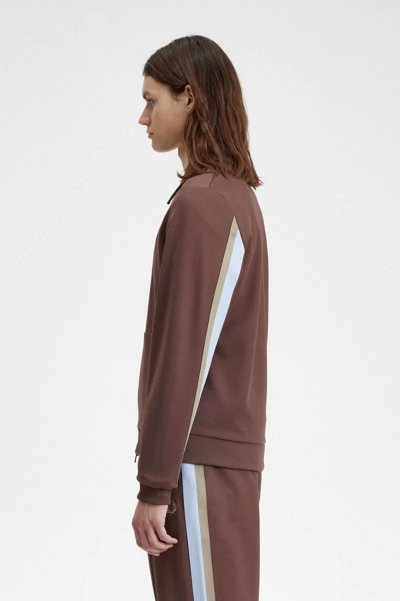 Diese Trikot-Trainingsjacke trägt unsere Signatur Taping – eines unserer beständigsten und bekanntesten Details – neu interpretiert als auffälliges Statement-Design auf der Rückseite der Arme. Abgerundet mit dem unerwarteten Detail eines eleganten, breiten Kragens ist dies der elegantere ältere Bruder der zuverlässigen Trainingsjacke.