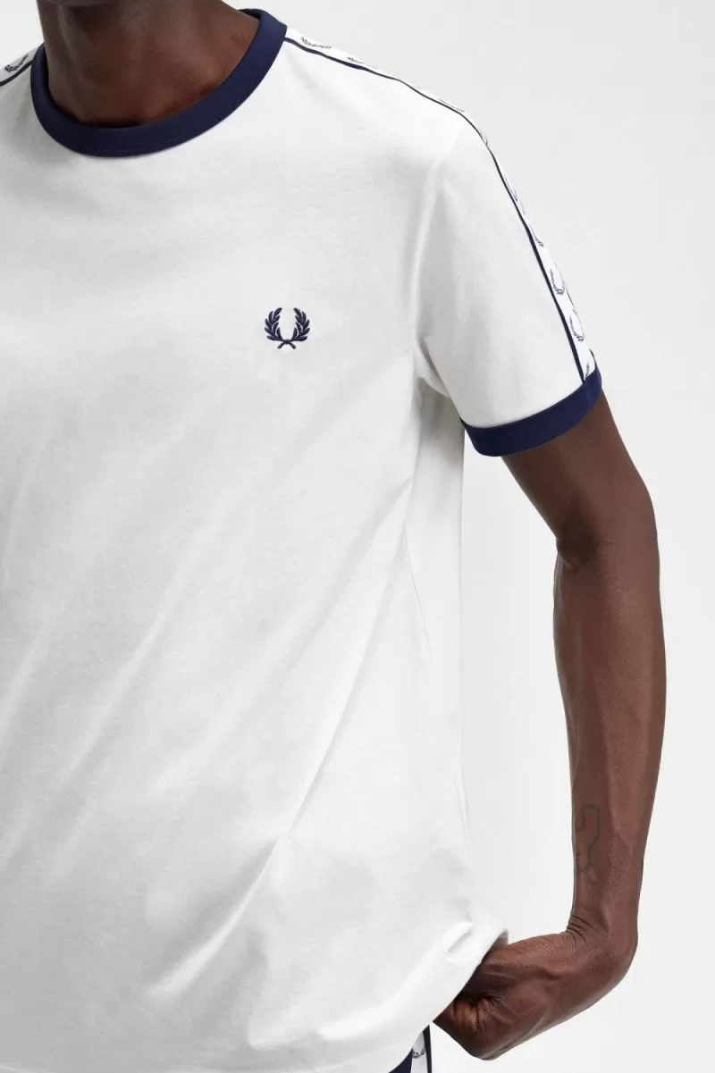 Unser Ringer-T-Shirt zeichnet sich durch seinen kontrastierenden Rippstrickkragen und -bündchen aus und ist am Ärmel mit unserem originalen Laurel Wreath-Tracktape besetzt.