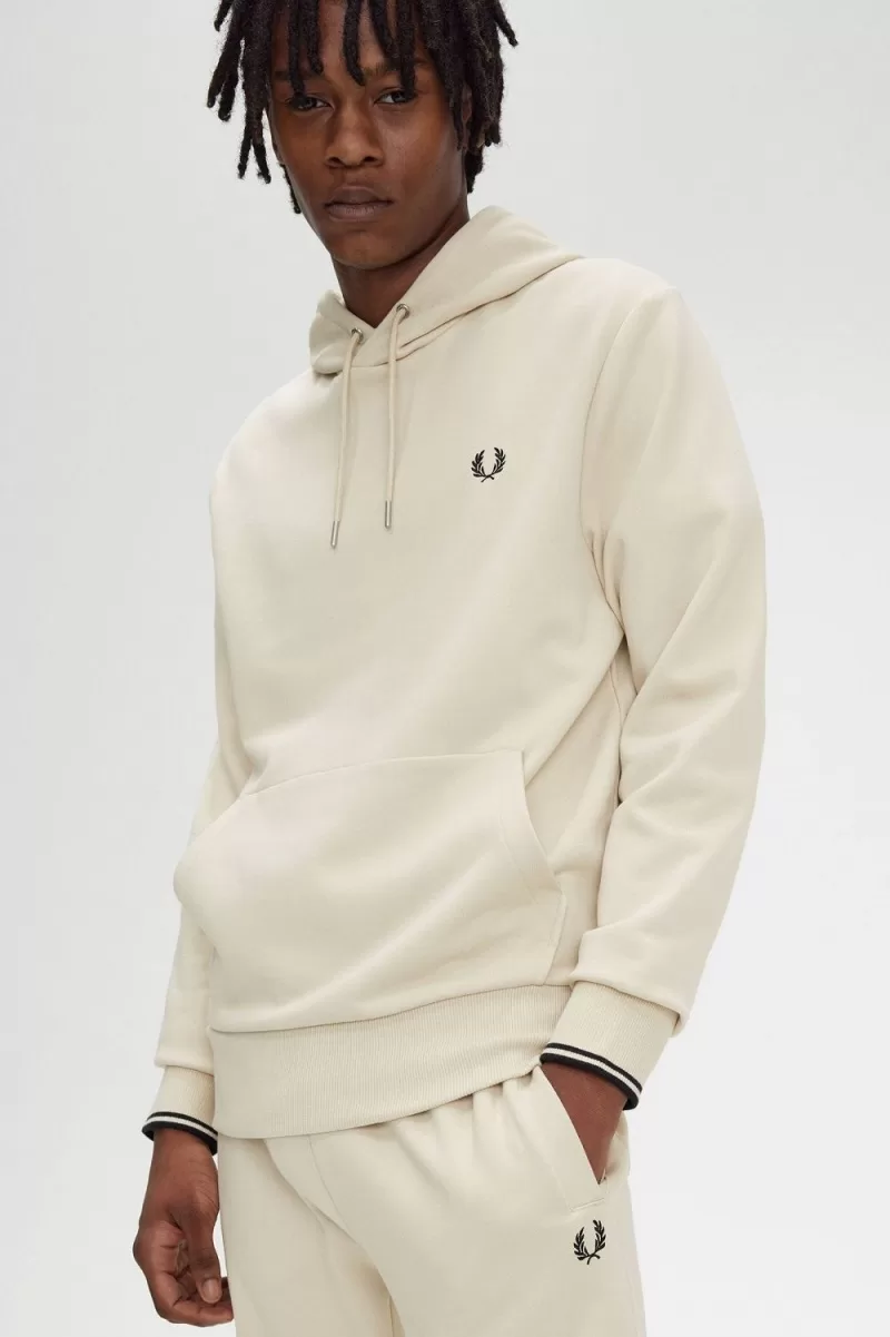 Tipped Hooded Herren-Sweatshirt Oatmeal Black