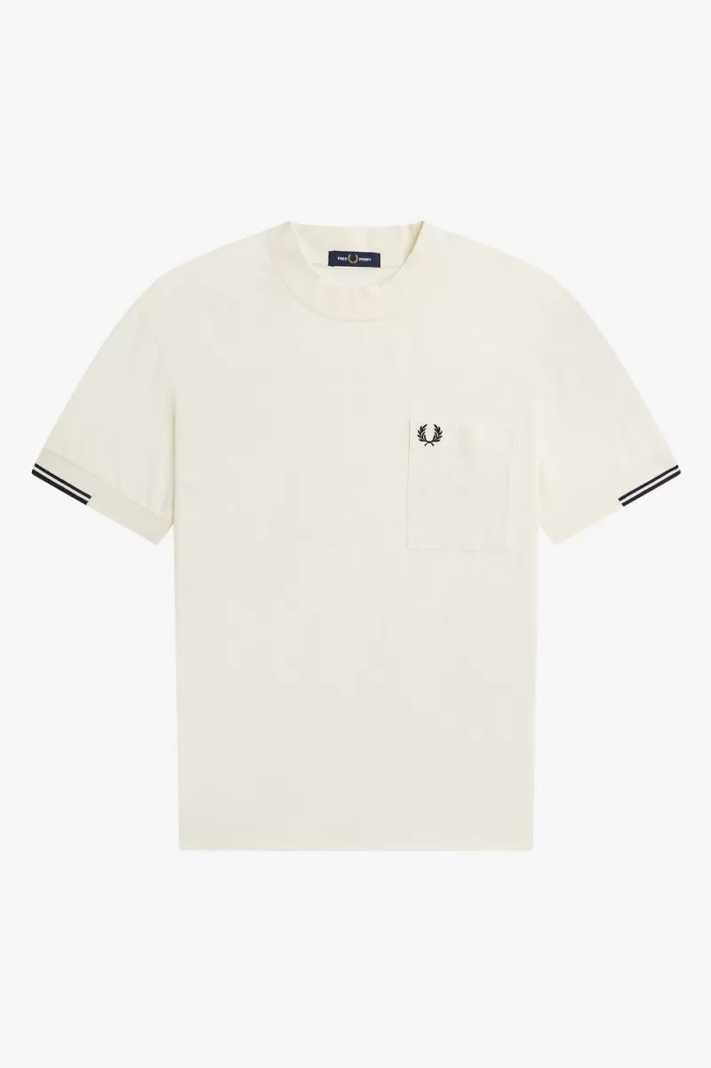 Manchmal ist weniger mehr. Unser Jersey-T-Shirt aus Baumwolle mit Rundhalsausschnitt, unterbrochenen Bündchen und einer farblich abgestimmten Brusttasche. ist eine Übung im Minimalismus, inspiriert von einer klassischen modernistischen Silhouette. Mit hohem Rundhalsausschnitt, dezenten Spitzen an den Ärmeln und unserer charakteristischen Lorbeerkranz-Stickerei. Fred Perry durch und durch.