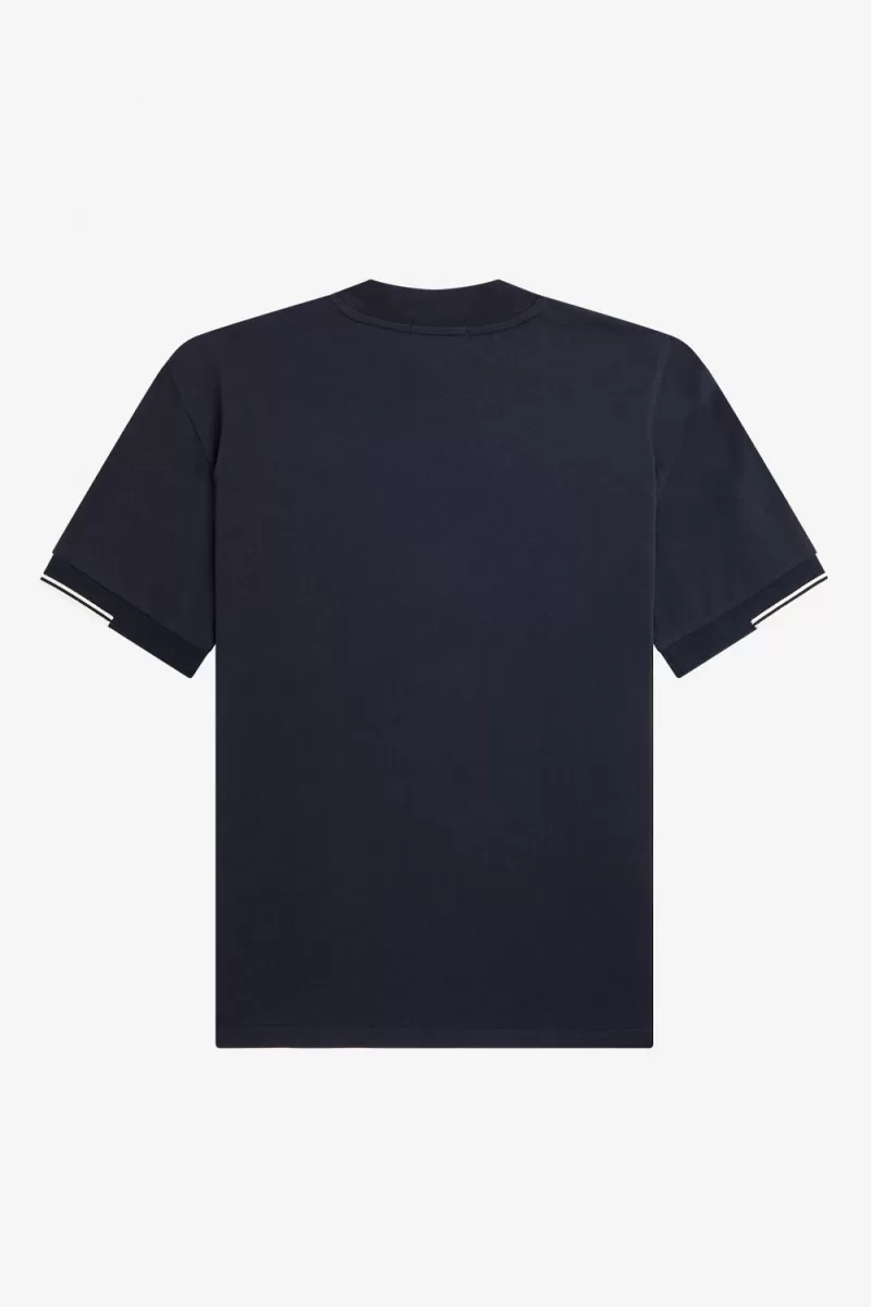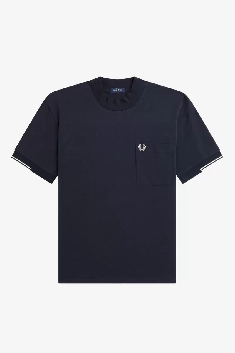 Manchmal ist weniger mehr. Unser Jersey-T-Shirt aus Baumwolle mit Rundhalsausschnitt, unterbrochenen Bündchen und einer farblich abgestimmten Brusttasche. ist eine Übung im Minimalismus, inspiriert von einer klassischen modernistischen Silhouette. Mit hohem Rundhalsausschnitt, dezenten Spitzen an den Ärmeln und unserer charakteristischen Lorbeerkranz-Stickerei. Fred Perry durch und durch.