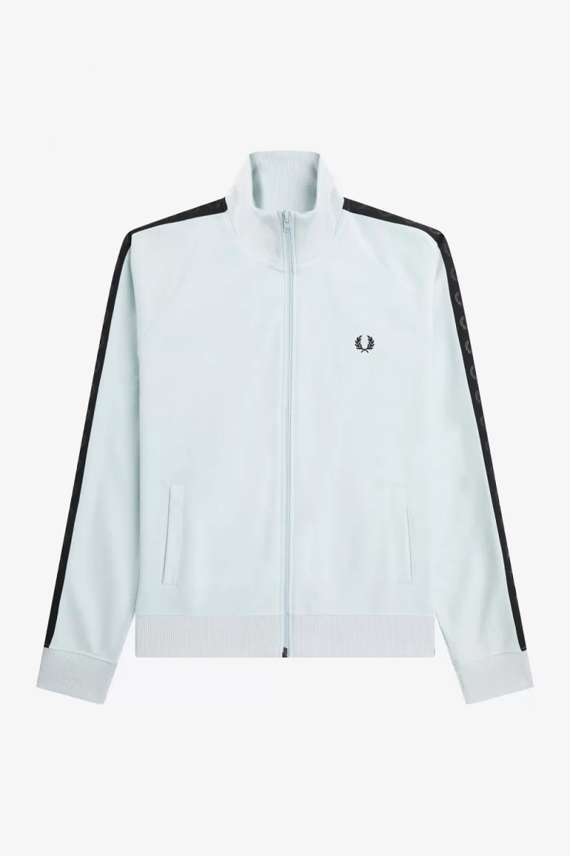 Unser Farbton Die mit einem Band versehene Trainingsjacke belebt ein Ein typischer Sportbekleidungsstil, der aus einer Zeit stammt, als kontrastierende Farben und Chemiefasern erstmals in Mannschaftstrikots eingeführt wurden. Es waren Stile wie dieser, die die Entwicklung von Sportbekleidung zu Streetwear vorantrieben, wobei die Trainingsjacke in der Britpop-Ära im Mittelpunkt stand.