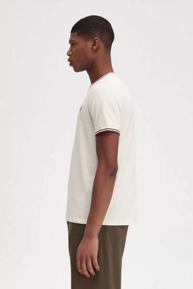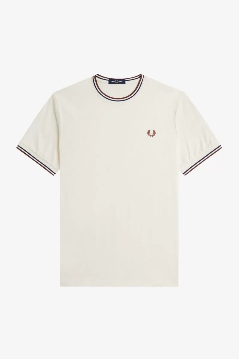 Ein einfaches T-Shirt mit unserem berühmten Zwillingsstreifen am Rundhalsausschnitt und an den Ärmeln.