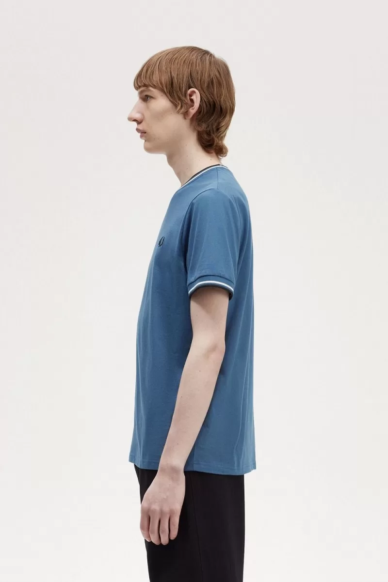 Ein einfaches T-Shirt, das am Rundhalsausschnitt und an den Ärmeln mit unserem berühmten Zwillingsstreifen verziert ist.