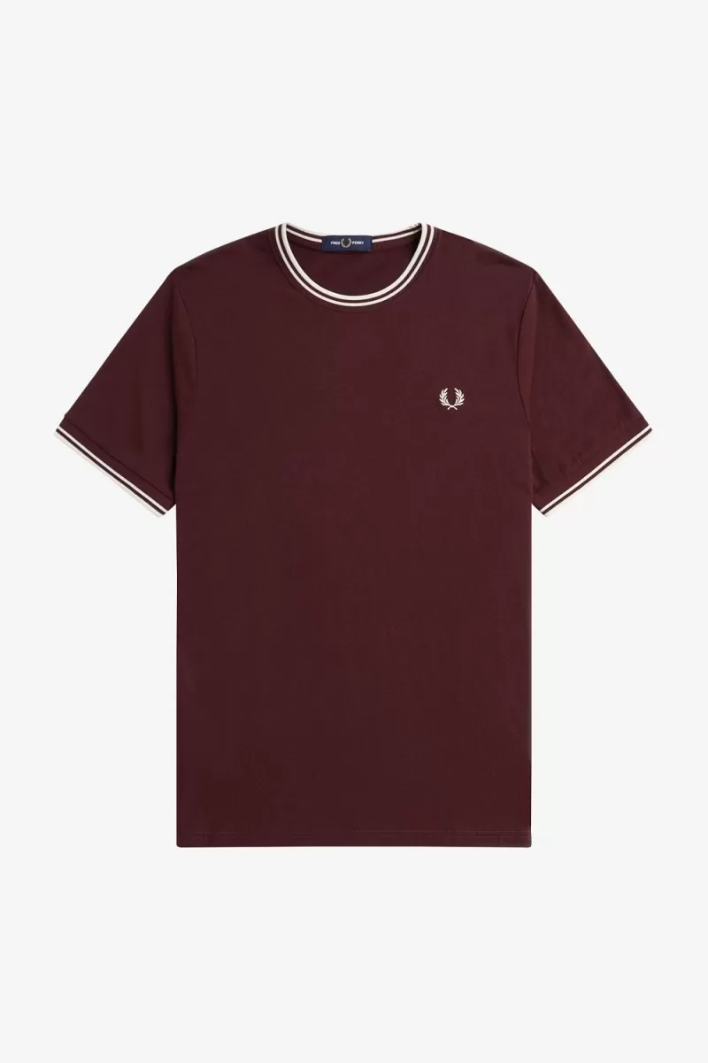 Der Legende nach kam es zu unserem Doppeltipp, als ein Käufer von Lillywhites darum bat, Freds einfarbiges Tennisshirt mit den Farben der Fußballmannschaft zu versehen. Nur wir geben Trinkgeld im Verhältnis 5-4-4 und es ist Teil unserer DNA. Unser T-Shirt mit Rundhalsausschnitt ist mit unseren charakteristischen Details gestaltet und verfügt über Doppelstreifen und eine farblich abgestimmte Lorbeerkranz-Stickerei. Sehr, sehr Fred Perry.