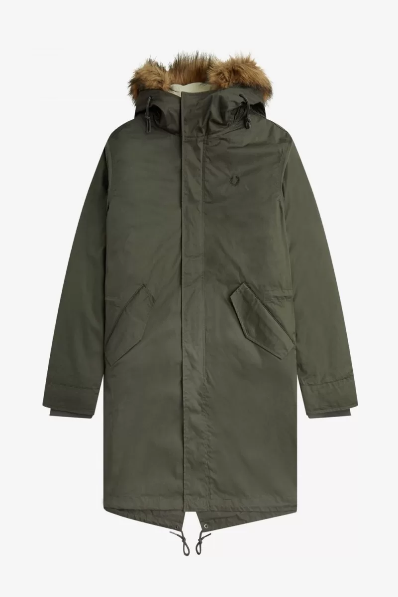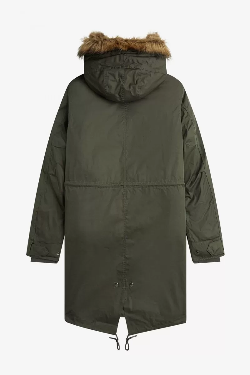 Unser ikonischer Parka mit Kunstpelzbesatz an der Kapuze und traditionellem Fischschwanzdesign auf der Rückseite.